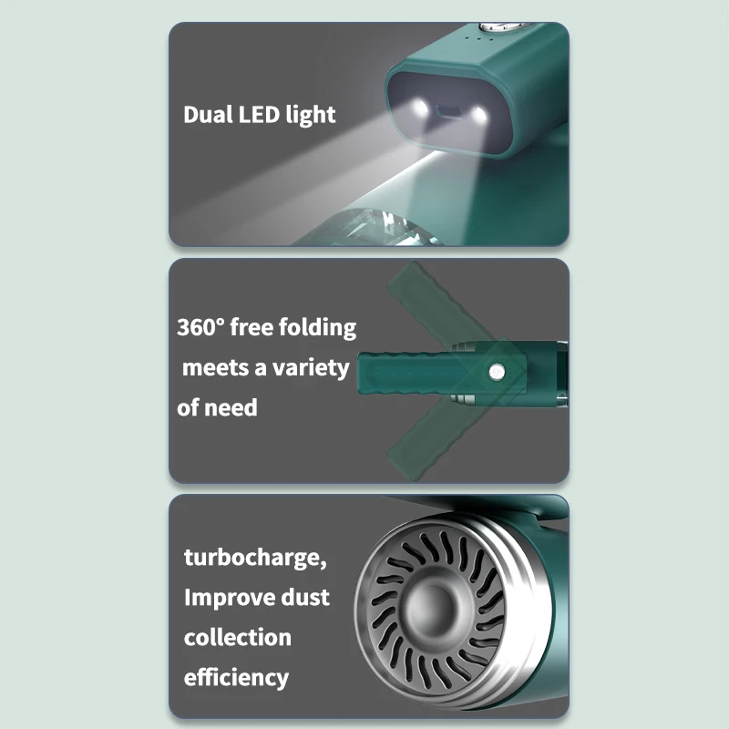 미니청소기 휴대용 무선 자동차 진공 청소기, 360 ° 프리 폴딩, 진공 및 송풍, 2 기어 전원 모드, 강력한 흡입